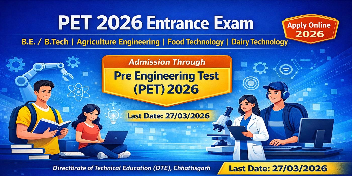 PET 2026 (Pre Engineering Test) के माध्यम से B.E./B.Tech, Agriculture Engineering, Food Technology,...