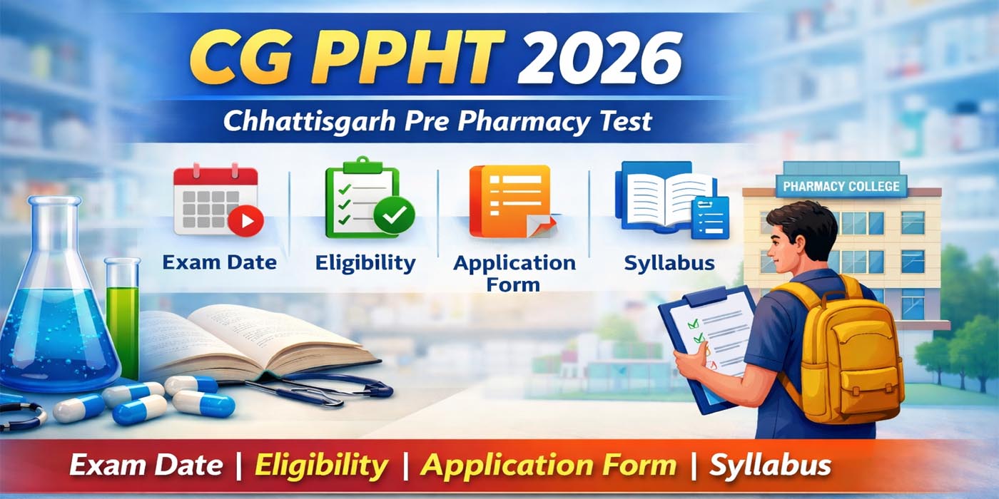 CG PPHT 2026 (Chhattisgarh Pre Pharmacy Test) के लिए आवेदन प्रक्रिया, योग्यता, परीक्षा तिथि,...